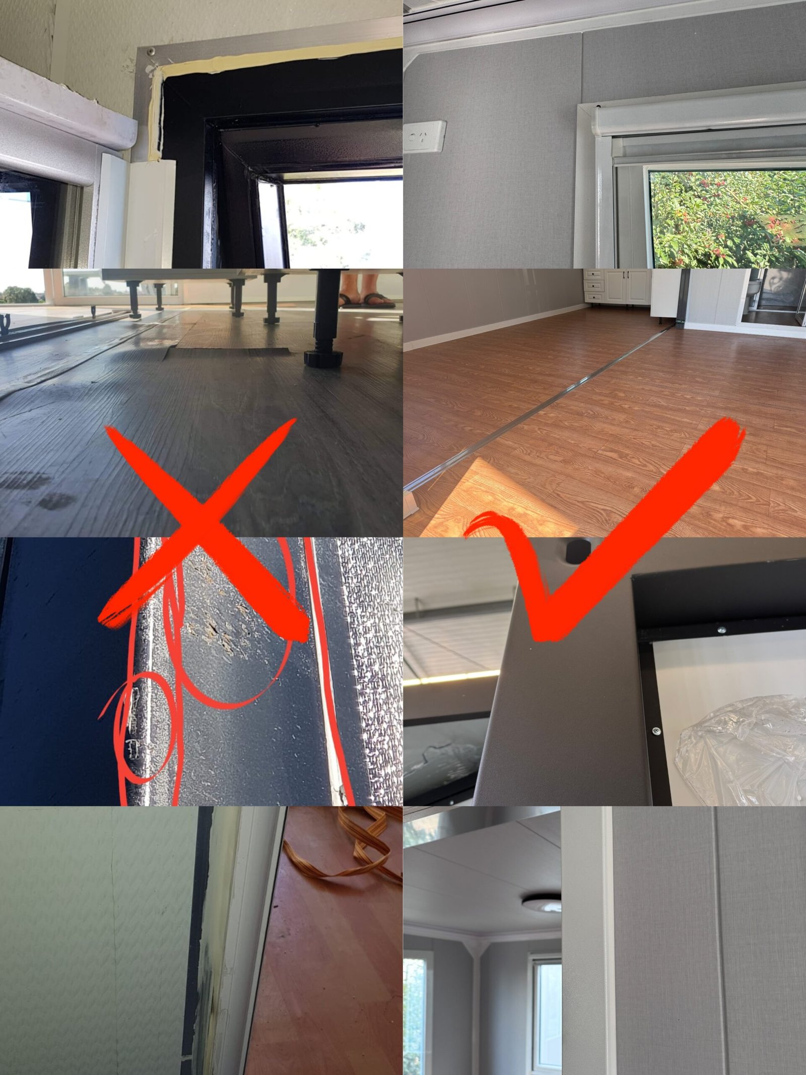 | Floor | Structural board | Building formwork on both wings, cement fibreboard in the middle body box, all 18mm thick. |